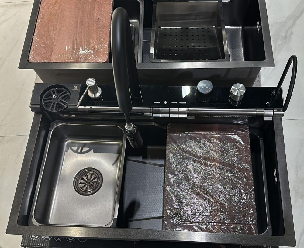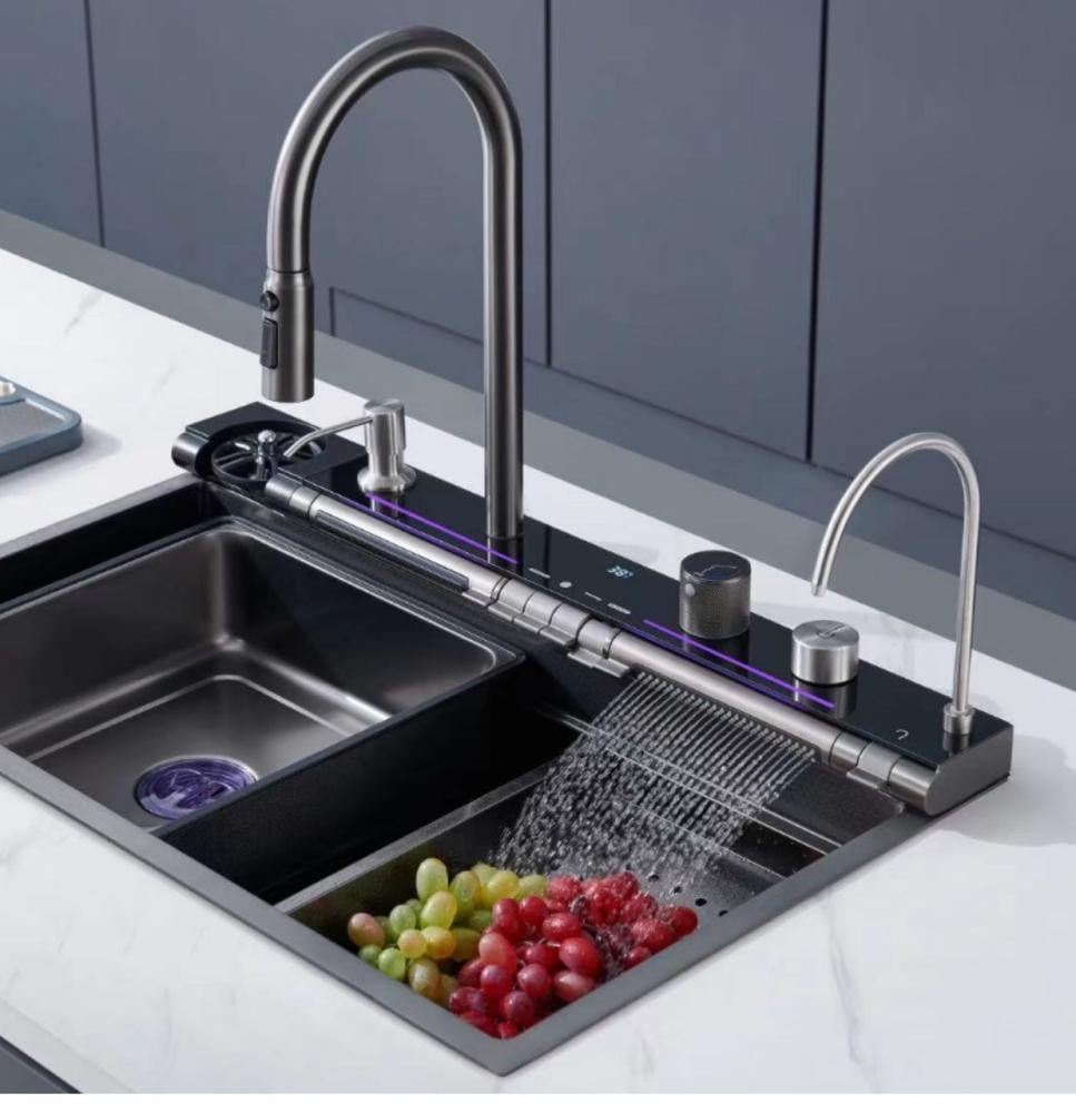 مجلى حوض شلال متحرك استالستيل 304 مزدوج من الفولاذ المقاوم للصدأ دبل نانو